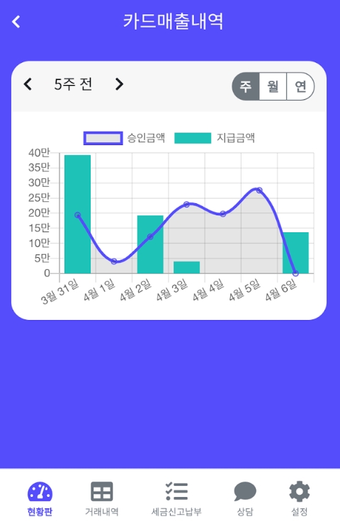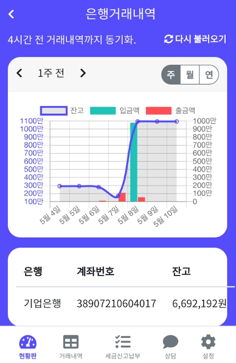 - 수입, 비용, 입출금 거래내역 데이터를 바탕으로 사업현황을 한눈에 확인!